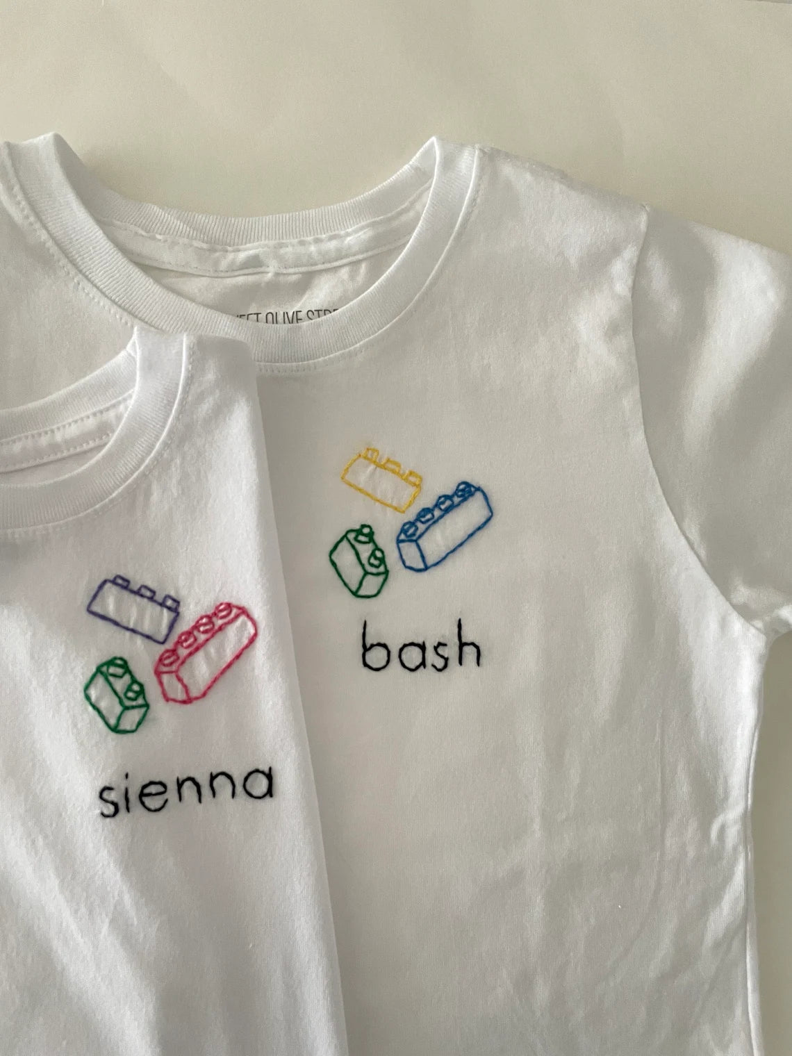 The perfect tee for your block-loving kiddo. Choose your favorite block colors to make it uniquely theirs.