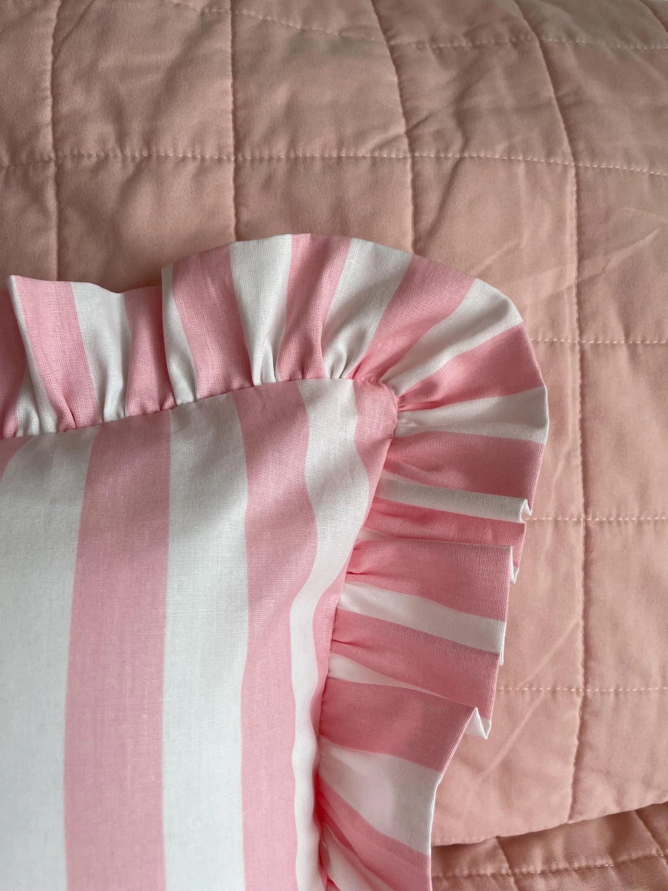 Pink Striped ruffle pillowcase with personalized name- Hand Embroidered